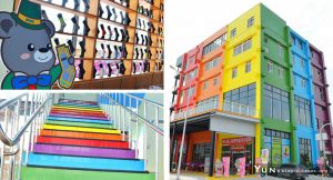 « [彰化社頭] 樂活襪之鄉博物館~ 彩虹般七色外牆繽紛亮眼,還有綠草地及戲沙池