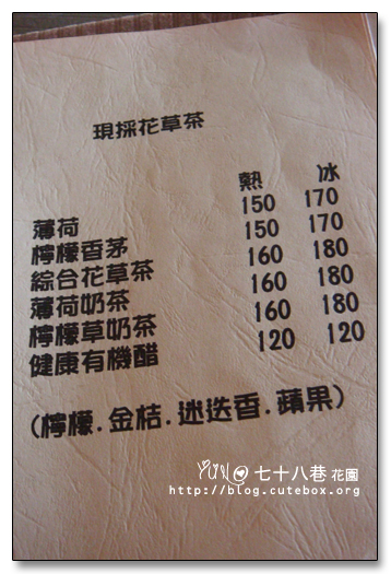 『七十八巷花園』的餐點還蠻好吃的,環境也很清幽,但價錢就不怎麼便宜囉!!