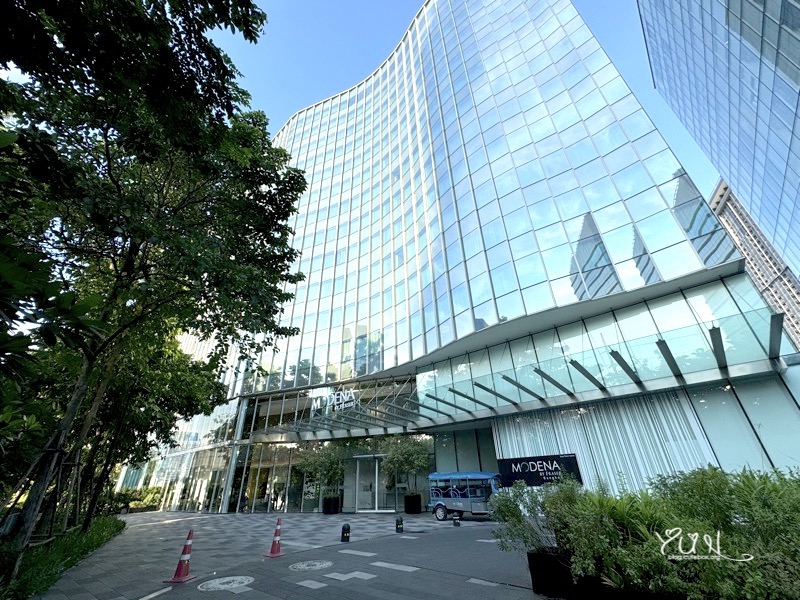 Modena by Fraser Bangkok 位在MRT Queen Sirikit National Convention Centre 一號出口左手邊,步行約三分鐘即可抵達!旁邊是玻璃帷幕的辦公大樓,前方有可愛的黃色SPARK插頭人(竟然忘記拍@@),辦公大樓一樓有7-11及餐廳,生活機能十分方便!